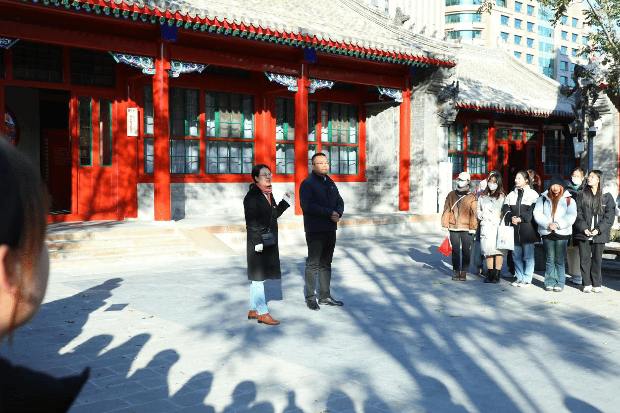 在中华民族共同体体验馆——原蒙藏学校旧址前,北京联合大学马克思主义学院专任教师张彰和我院团委书记姚远共同为同学们讲授了一堂精彩的思政课。张彰老师引用回民抗日武装“冀中回民支队”沉重打击日伪军的事例生动讲解了“中华民族共同体”的历史内涵和现实意义;姚远老师从“增强文化认同”角度阐述了“新时代大学生应该如何铸牢中华民族共同体意识”,同学们从这堂“沉浸式”思政课中对铸牢中华民族共同体意识有了更清晰、更深刻的认识。